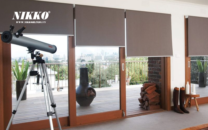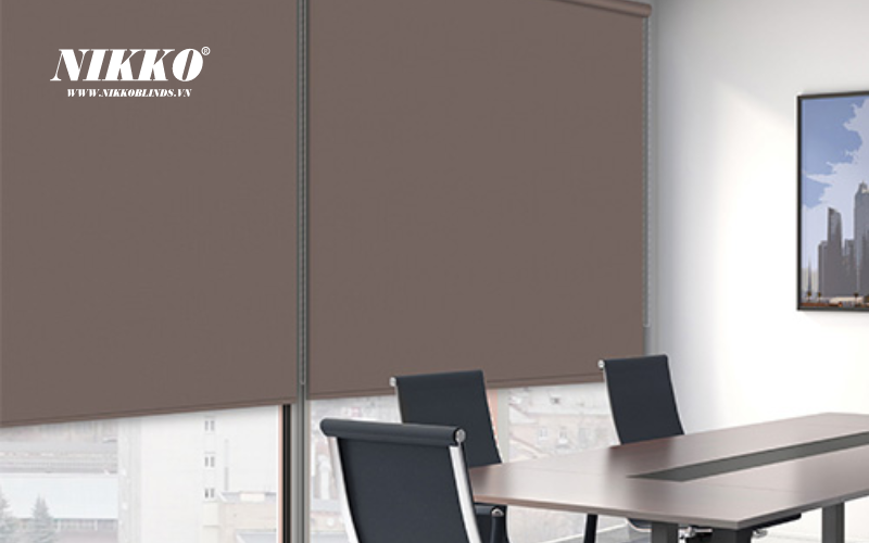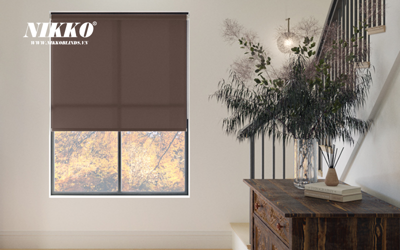 Rèm sáo cuốn trơn màu nâu NIKKOBLINDS có sự đa dạng trong chất liệu vải, thể hiện tốt tính năng "Độ mờ hoạt cảnh", cho phép người sử dụng cảm nhận/nhìn thấy không gian bên ngoài những vẫn đảm bảo được đặc tính cản nhiệt, cản sáng.